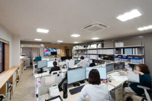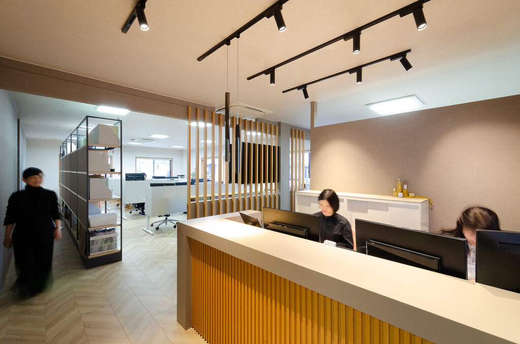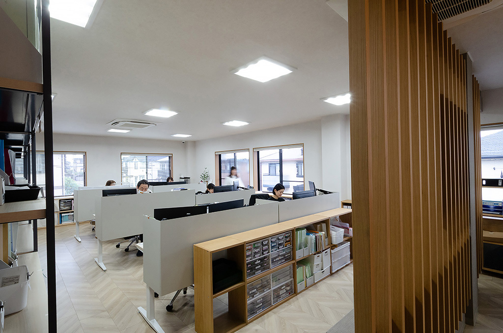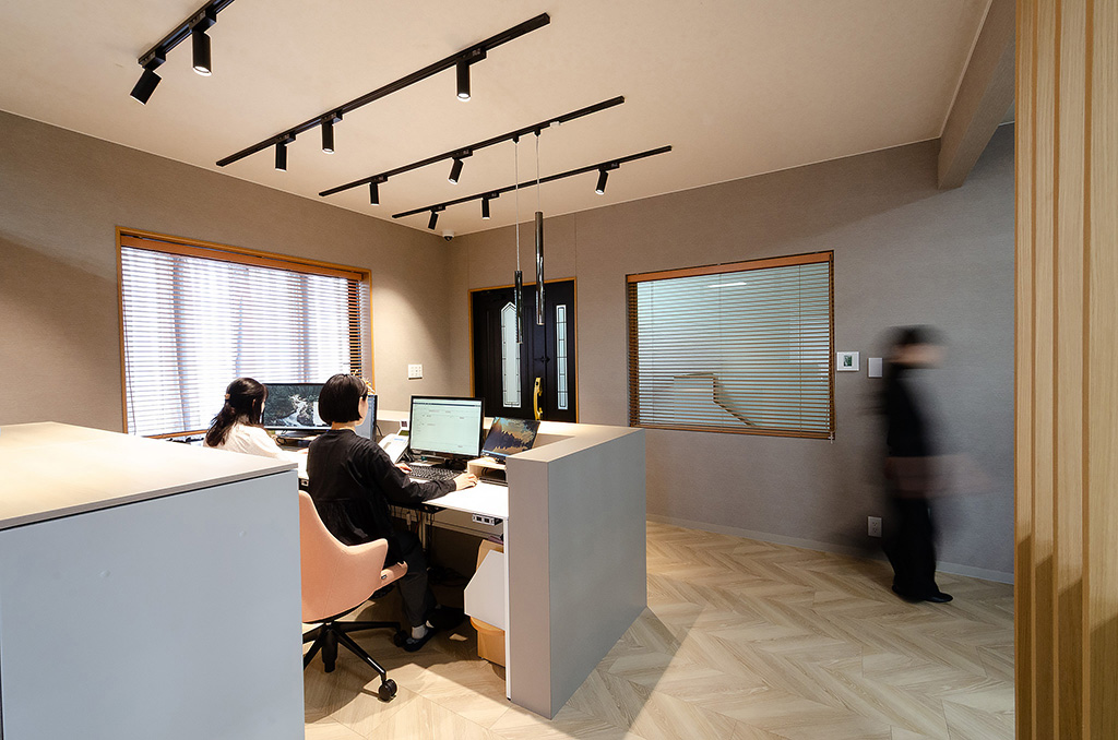 動線とゾーニングを整理することで、スタッフや代表者の明るい笑顔や声が自然とオフィス内に通り抜け、仕事の“流れ”が心地よく循環する空間が実現しました。